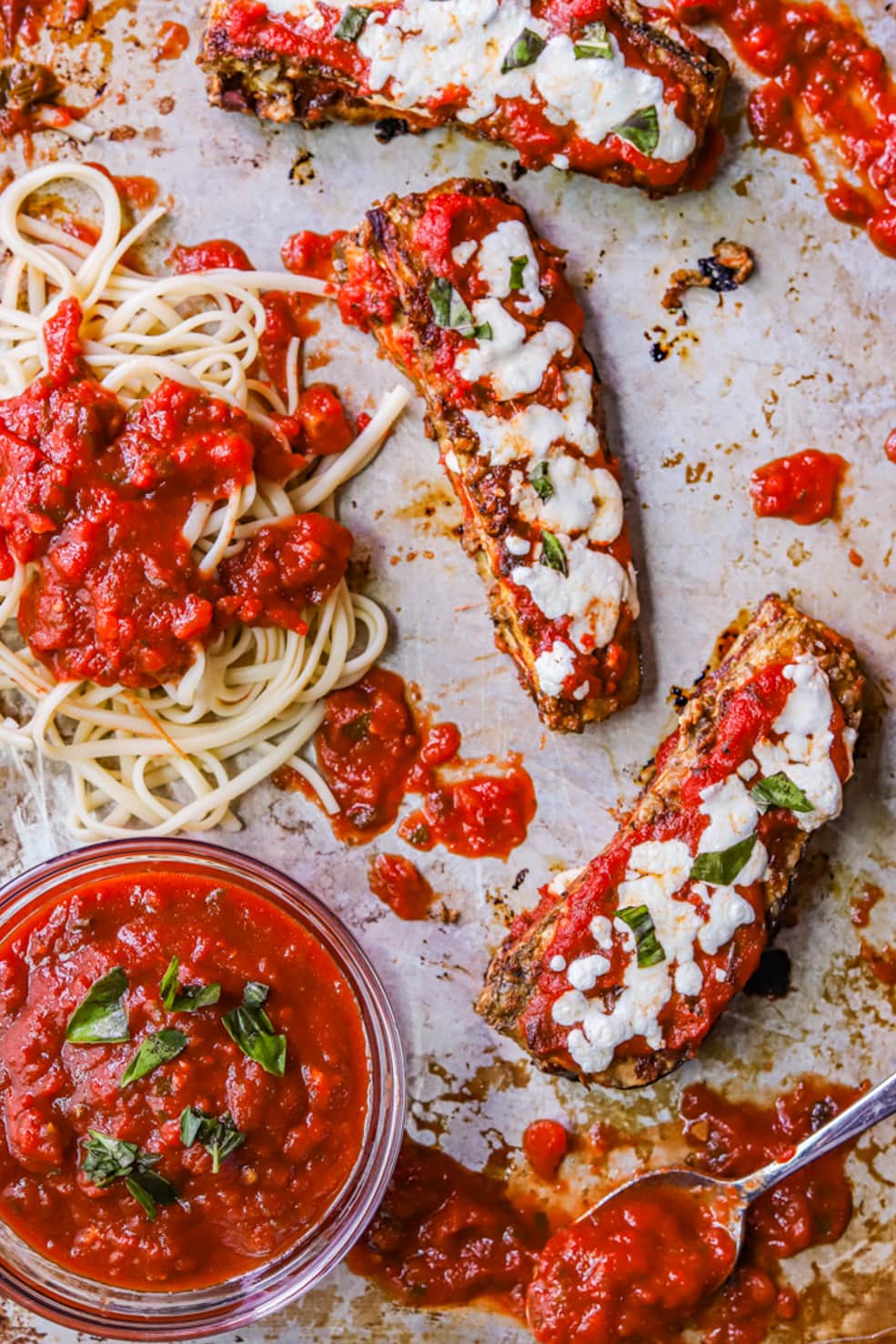 I love eggplant parmesan, but often, it's greasy and dense when I order it in restaurants. That's why I like to make my own. If you haven't already, check out my recipe for eggplant parm steaks with a unique crunchy coating that hits the spot.
