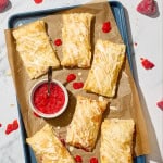 Flaky and flavorful, these puff pastry pop tarts are filled with strawberries and a hint of thyme for a fresh twist on the nostalgic favorite. They're easy to make with store-bought dough and are a tasty breakfast or snack for spring or summer mornings.